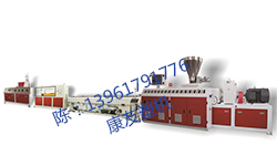 Main product list of KANGXIANG: PVC corrugated tile production line, conical twin screw extruder, sinlge screw extruder, variable specifications of plastic pipe production line, plastic profile, sheet production line, and other auxiliary equipments.